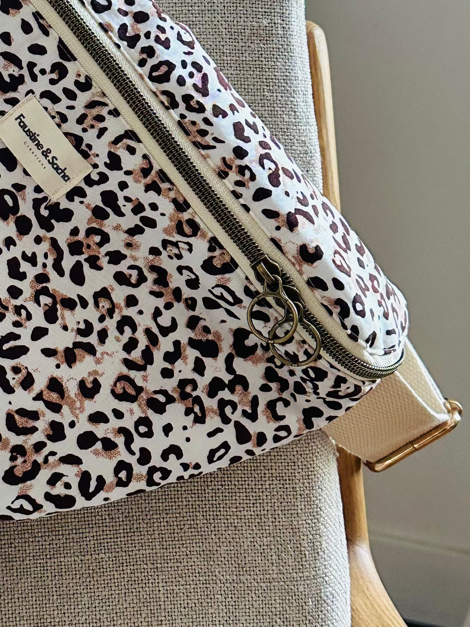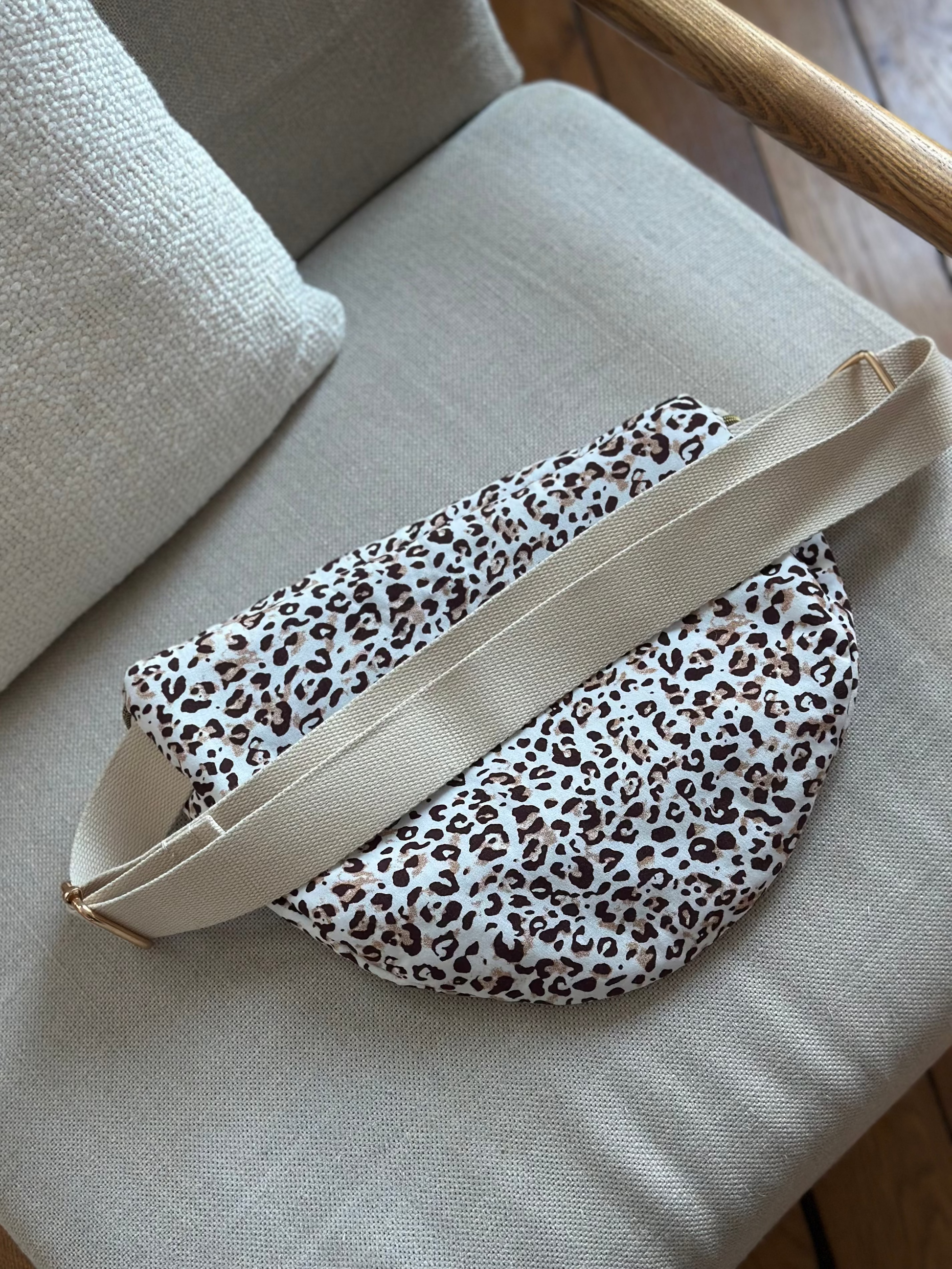 Détail de Chiquita : anse réglable, forme arrondie, format XL, grande poche zippée à l’intérieur pour séparer vos affaires. 2 curseurs pour ouverture droite ou gauche .